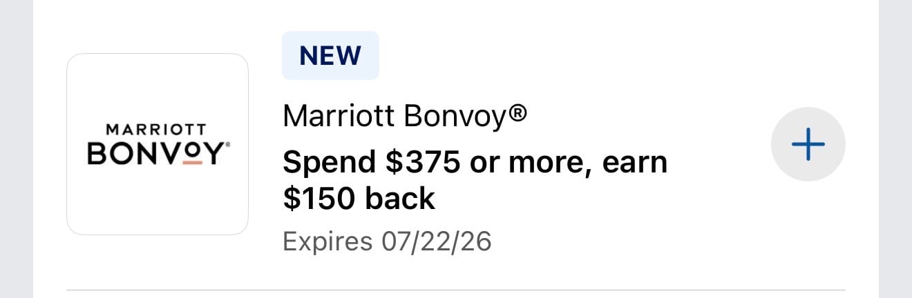 The big one that stood out to me is an offer to earn $150 back after spending $375 at Marriott hotels.