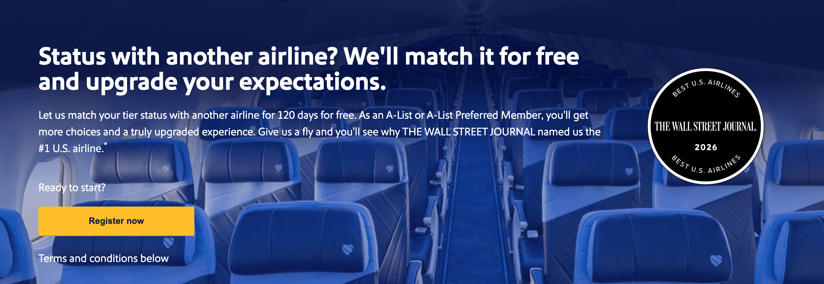 But right now, Southwest is offering something called a status match, which is basically the loyalty worldâs version of a shortcut.