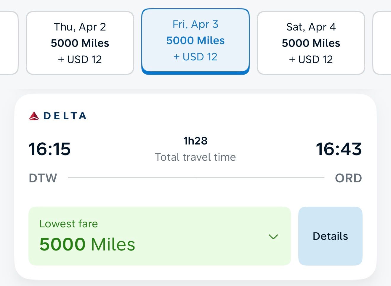 Take this flight from Detroit to Chicago, which costs $191 cash.