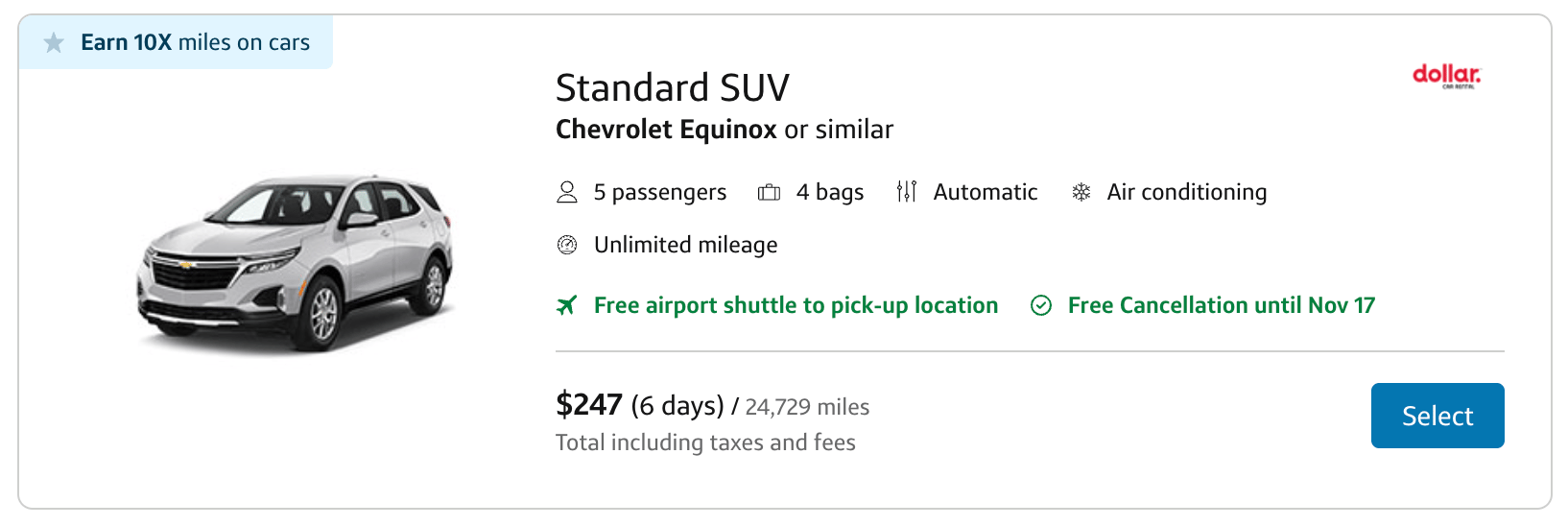 The best way to explore Oʻahu is by car, so a rental car is in order. Consider using your $300 travel credit for a rental through Capital One Travel. Six days for a standard SUV and nothing out of pocket? You bet!