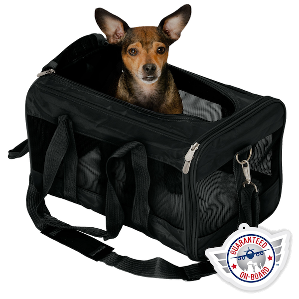 Pretzel's favorite ride! This lightweight carrier fits neatly under most airline seats and keeps her calm, comfy, and ready for takeoff.